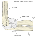このように橈骨が抜けることによって発生するタイプが多いのですが、肘を体の下にして寝転がっていて自分の体重により引っ張られて発生するケースもあります。